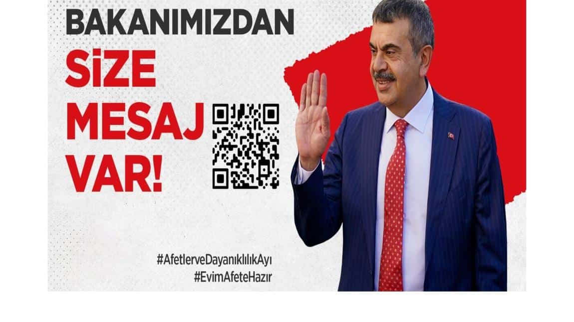 Millî Eğitim Bakanı Yusuf Tekin, "Afetler ve Dayanıklılık Ayı" kapsamında öğrencilere ve velilere seslendiği mesajında, afetlere karşı hazırlıklı olmanın önemine dikkat çekti.